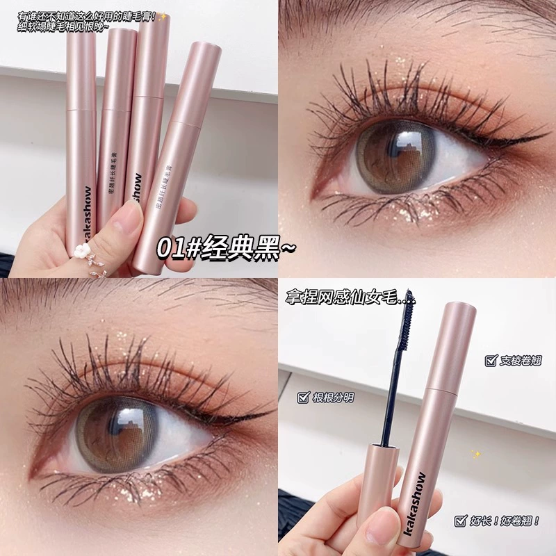 Waterproof mascara for slim, curling, non-smudged eyes, fine comb-type base, thick sunflower brown lower eyelashes