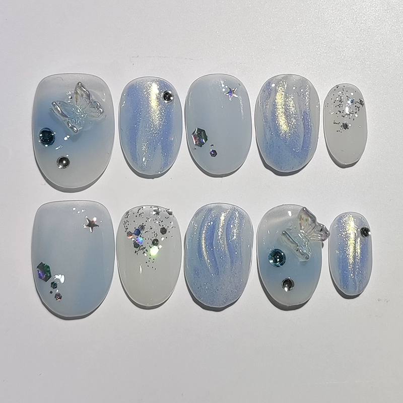 Purely hand-painted phototherapy butterfly love flower short style manicure