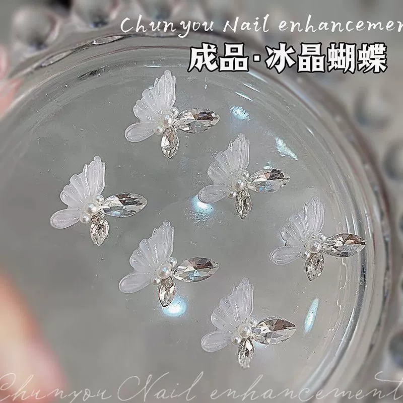 Finished frozen butterfly manicure diamond Japanese new style handmade ice crystal butterfly inlaid with marquise diamond sparkling nail jewelry set