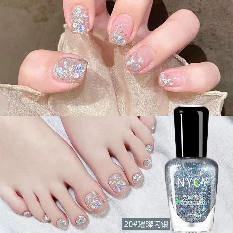 Toe nail polish for women, no-bake, quick-drying, long-lasting, non-peelable, popular color set, sparkling silver summer