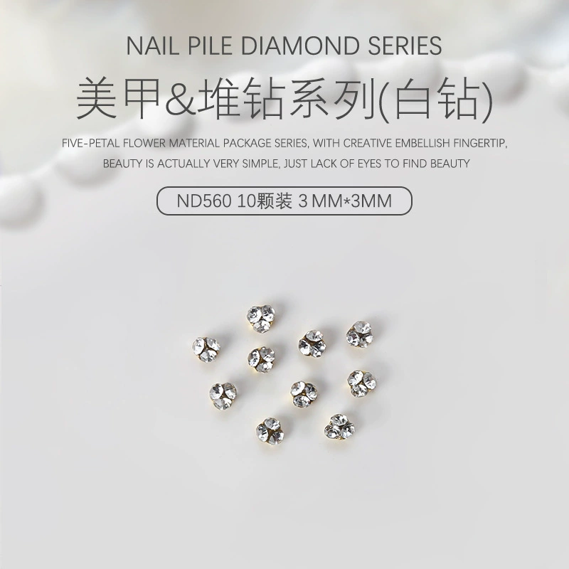 10-piece nail art crystal white stacked diamond round three-dimensional rhinestone metal nail multi-faceted crystal diamond jewelry