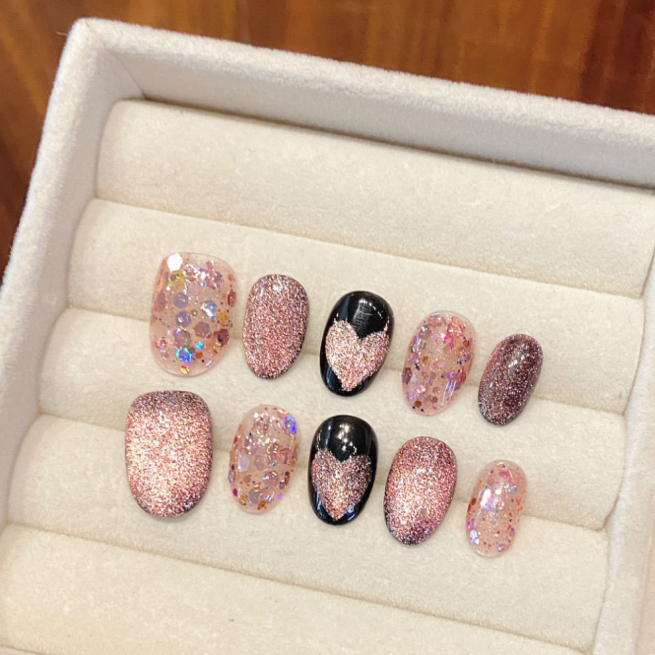 Short high-end all-match love sequin phototherapy wearable nails