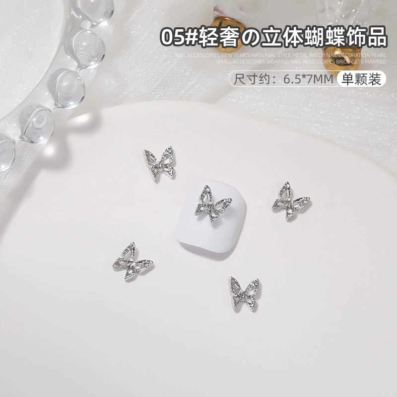 Manicure silver alloy jewelry light luxury three-dimensional bow metal large butterfly wings nail diamond accessories