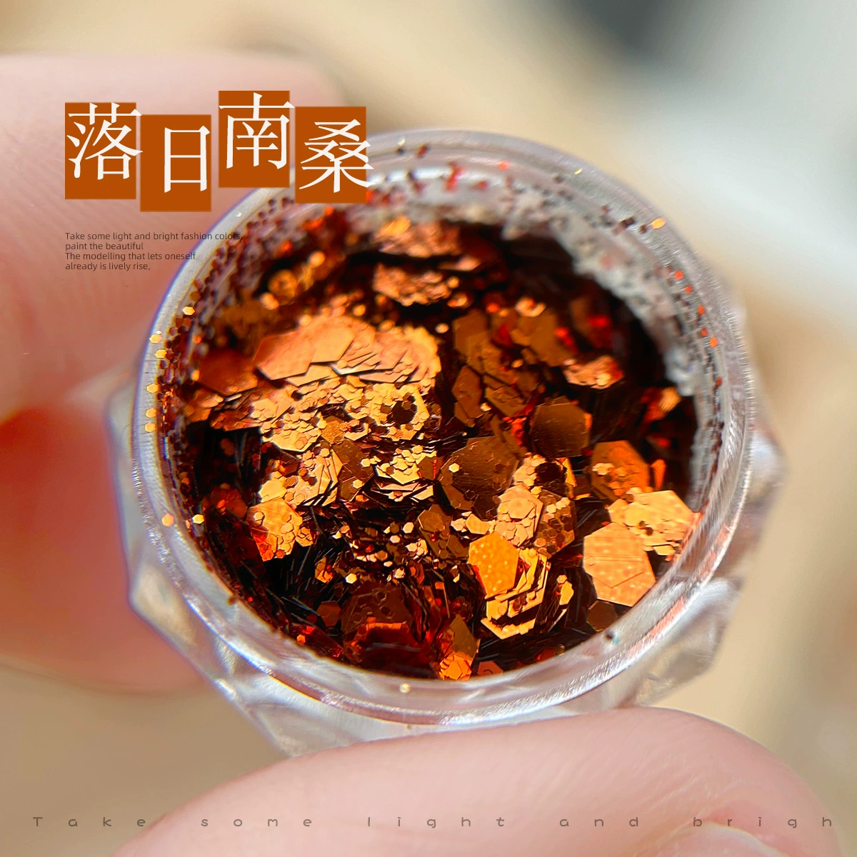 Autumn and winter coffee style sequins and glitter mixed manicure