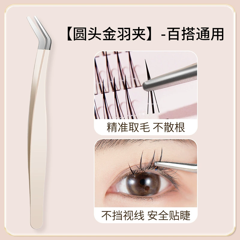 Excellent product selection BQI gold feather clip false eyelash assistant round head tweezers grafting beauty tools beginner eyelashes