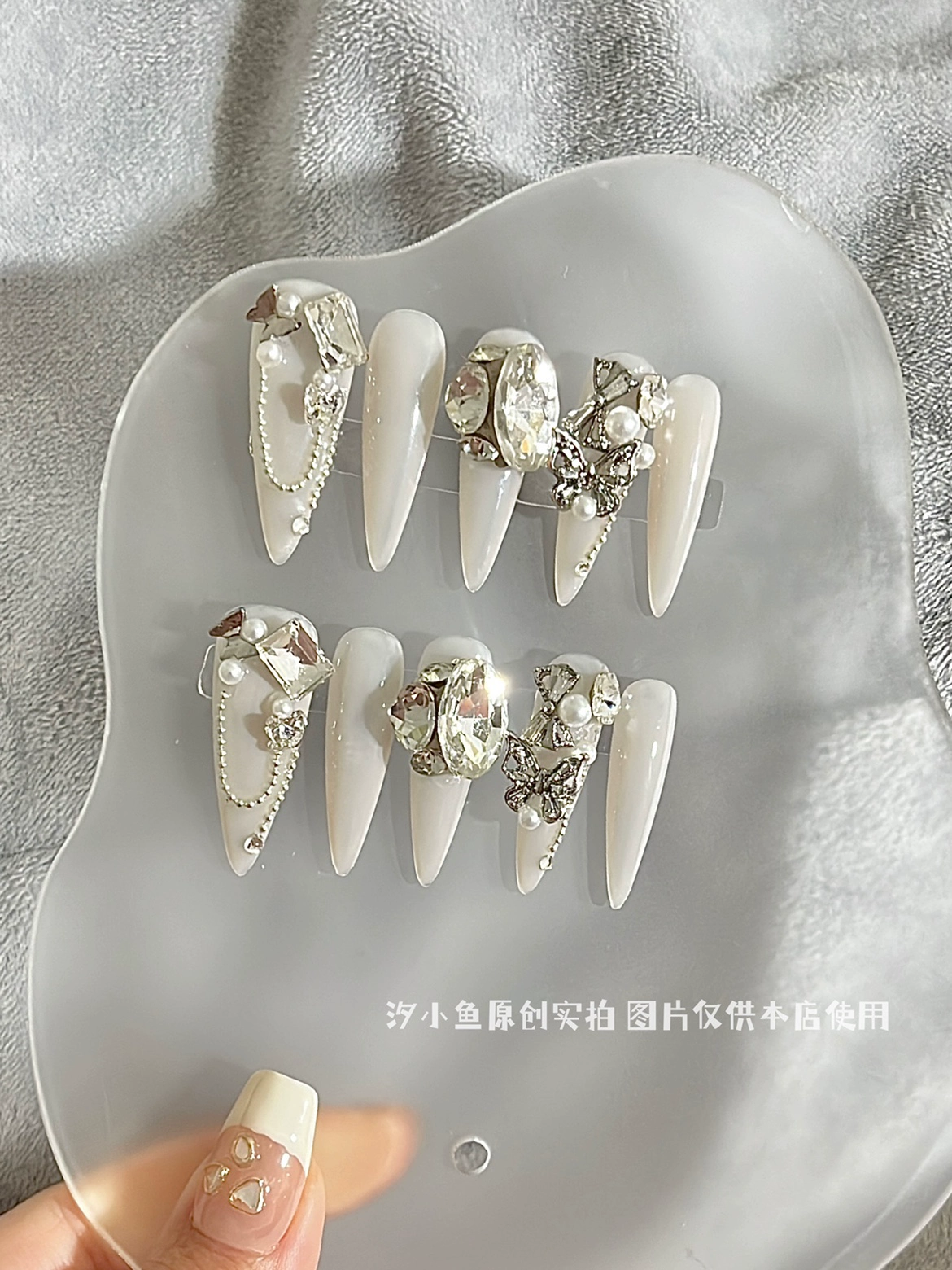 Wear Nails Luxurious Diamond Dove Bridal Water Drop Manicure