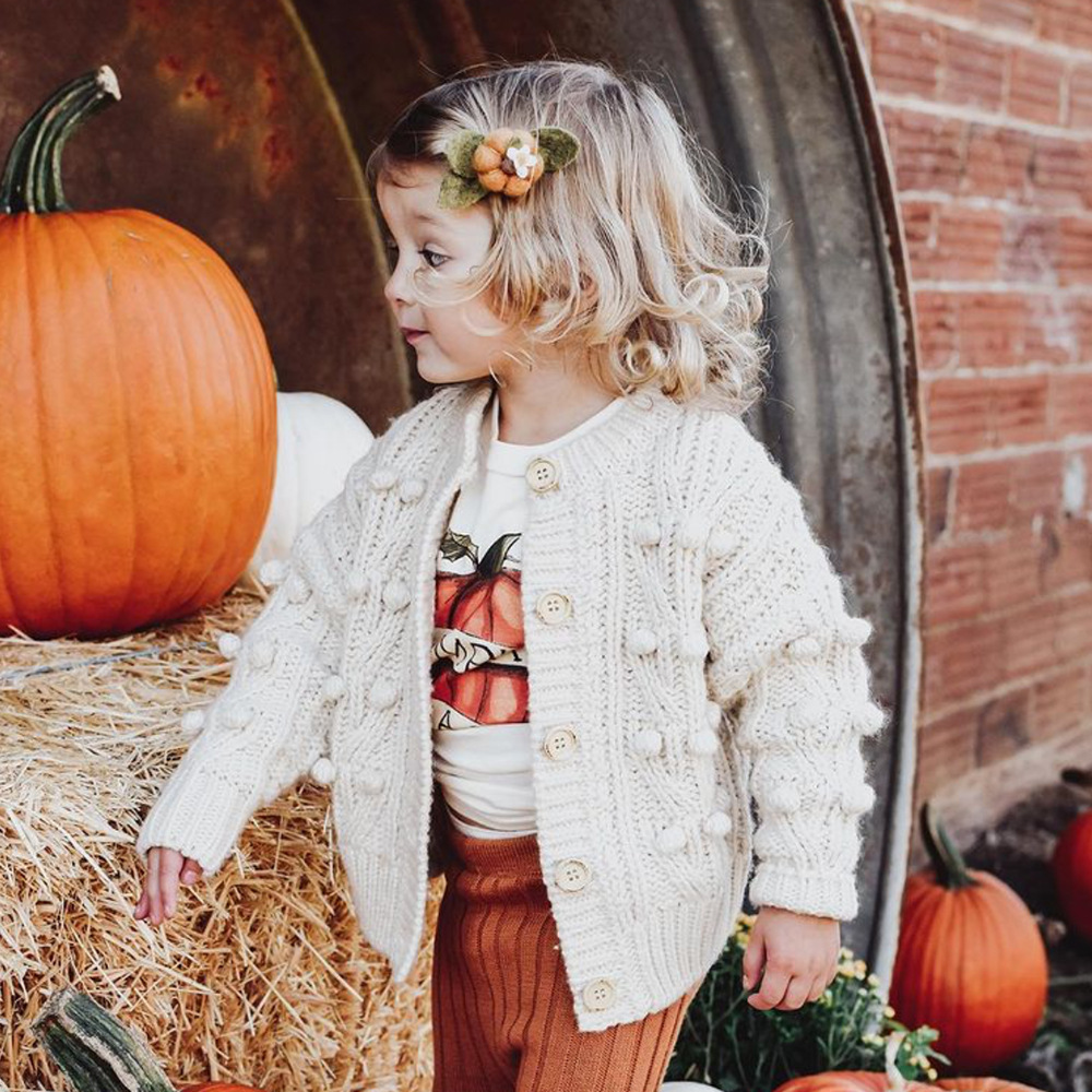 Girls’ autumn and winter cardigan ball sweater handmade fur ball baby girls’ solid color children’s clothing knitted thick needle coat western style