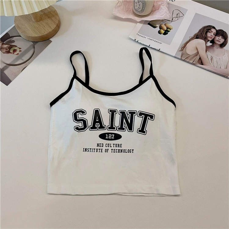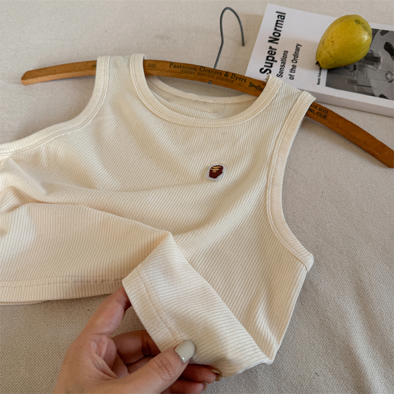 Children’s summer elastic cotton sleeveless t-shirt embroidered suspenders
