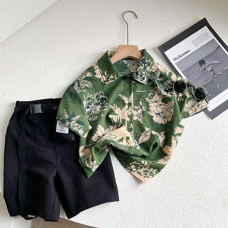 Boys’ floral shirt summer ruoshuai beach style short-sleeved shirt children’s fried street printed boys’ shirt fashionable and versatile