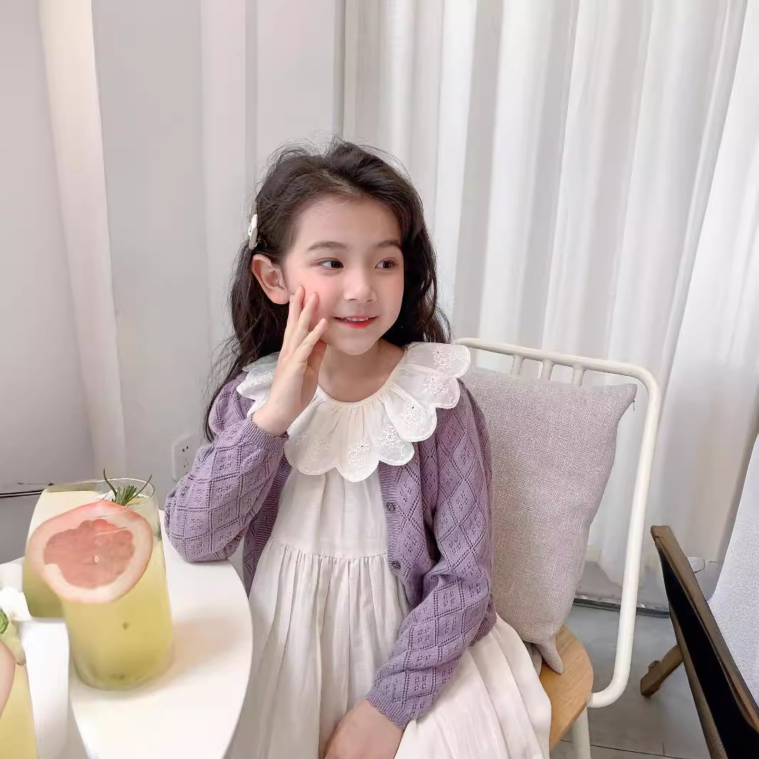 Spot 23 spring and summer girls lou with purple hollow sweater air conditioning sweater cardigan
