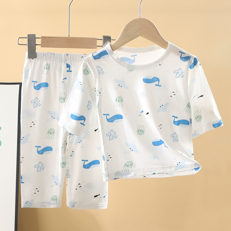 Summer new children’s suit home wear boys and girls Ice Silk two-piece set baby air conditioning clothes pajamas children’s clothing wholesale