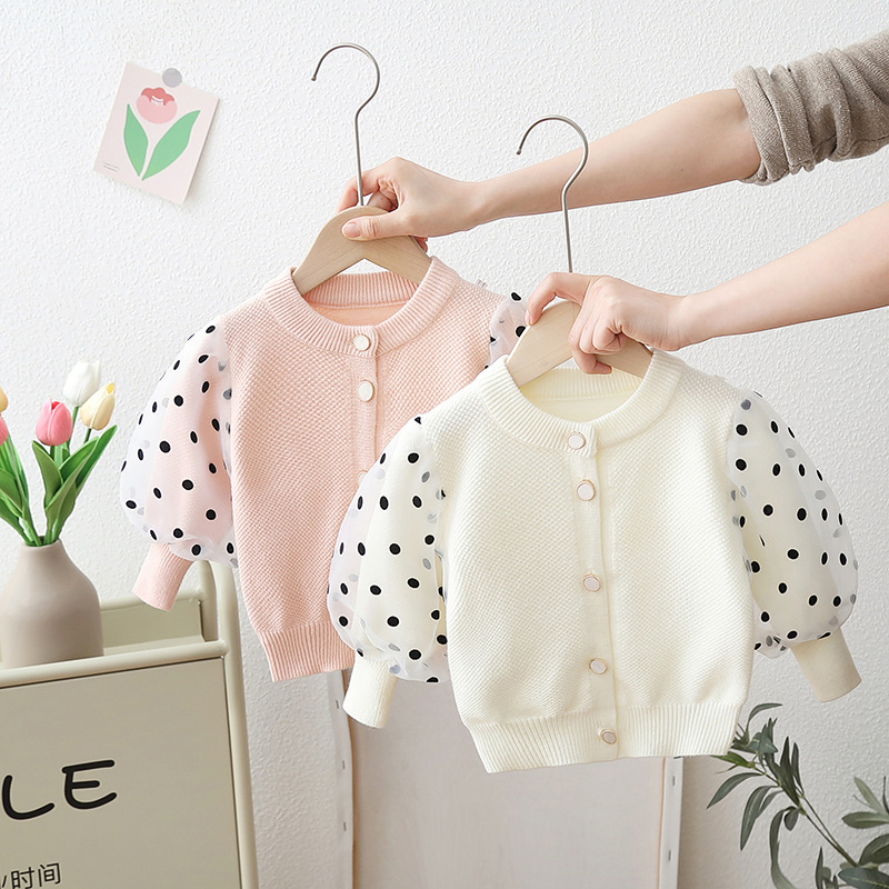 Girls’ Sweater Autumn and Winter Japanese Casual Solid Color Lace Sweater Fashion Children’s Knitted Cardigan Jacket