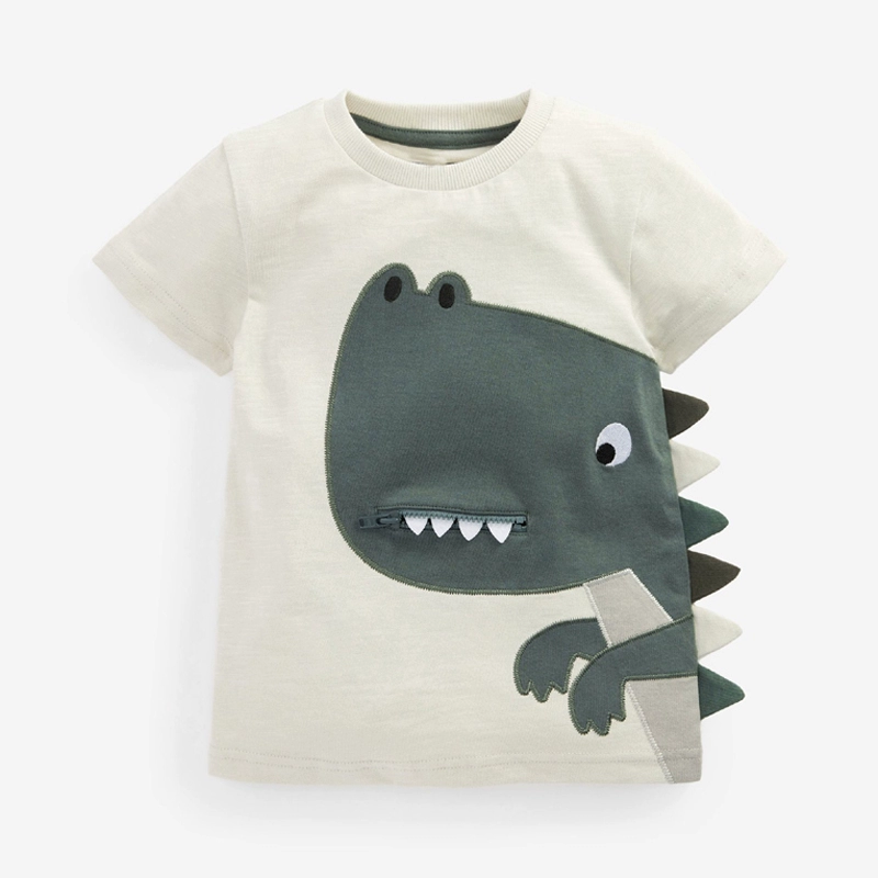 Gray Undershirt Round Neck Baby Half Sleeve Dinosaur T-Shirt