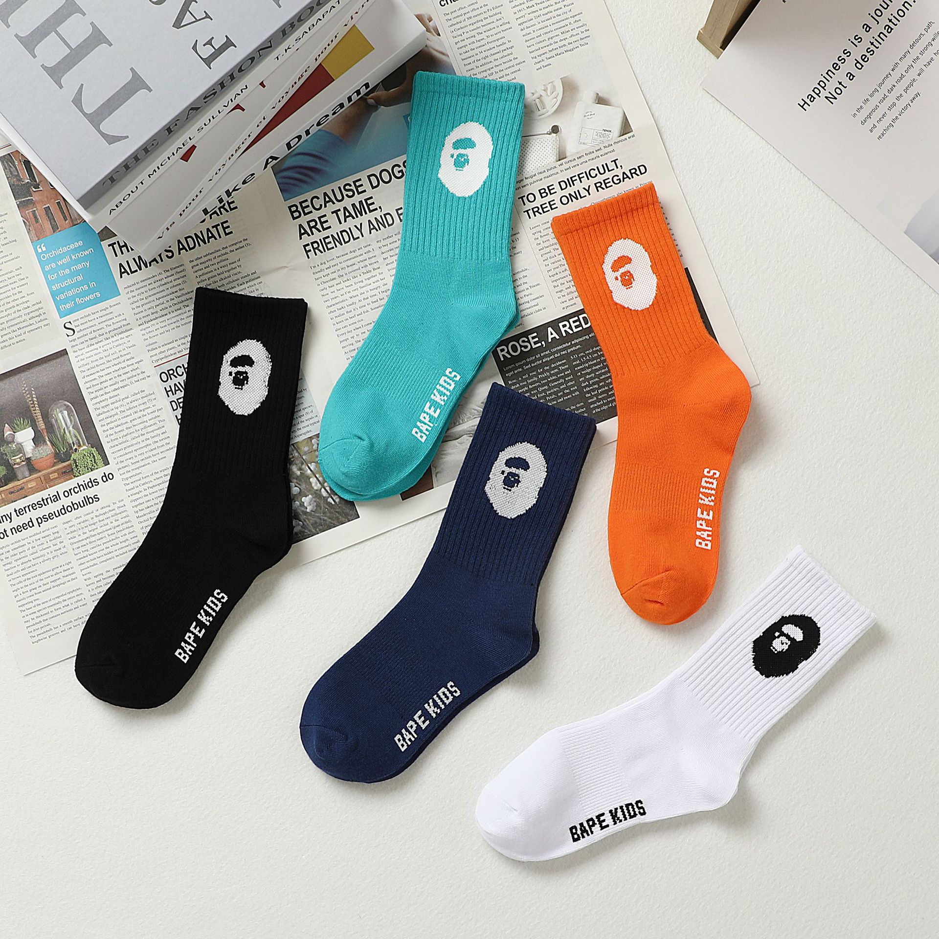 Monkey five-color socks 2024 new spring and summer four seasons large children’s letter socks