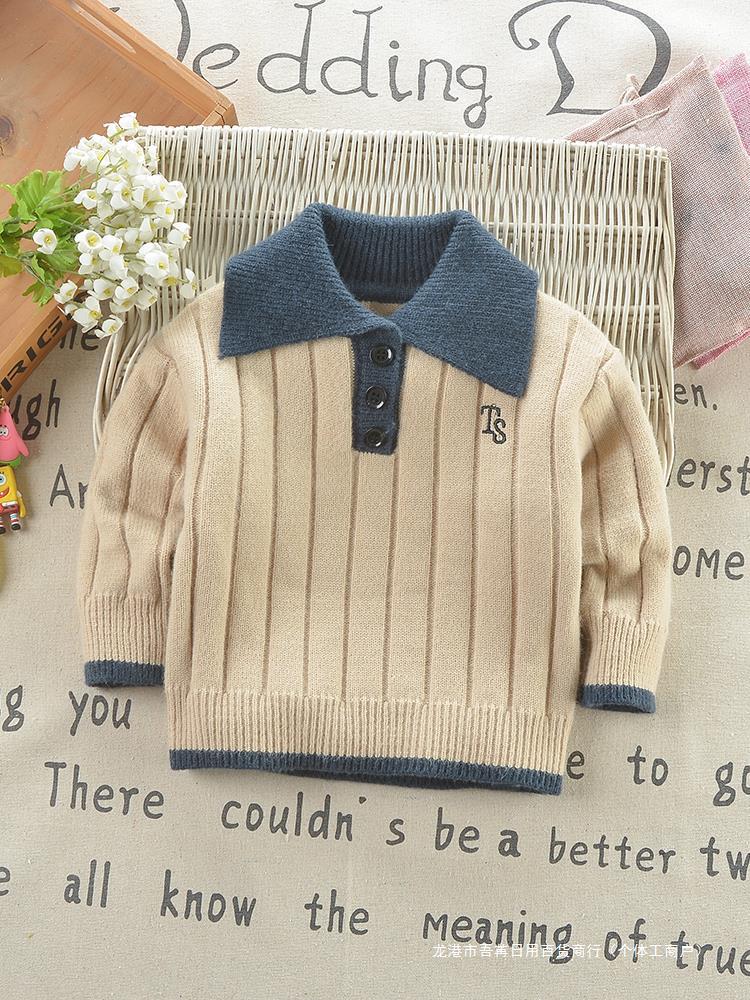 Boys’ sweater coat autumn and winter children’s cashmere sweater baby sweater top pullover baby POLO collar sweater
