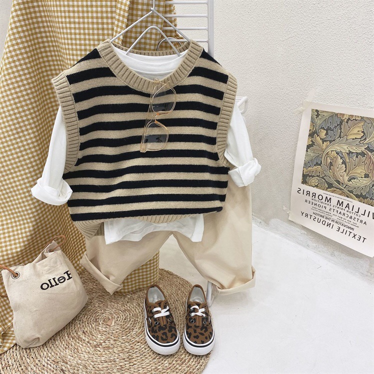 Boys and Girls Korean Knitted Vest Vest Trendy Striped Sweater Children’s Fashionable Sleeveless Top Children’s 0138