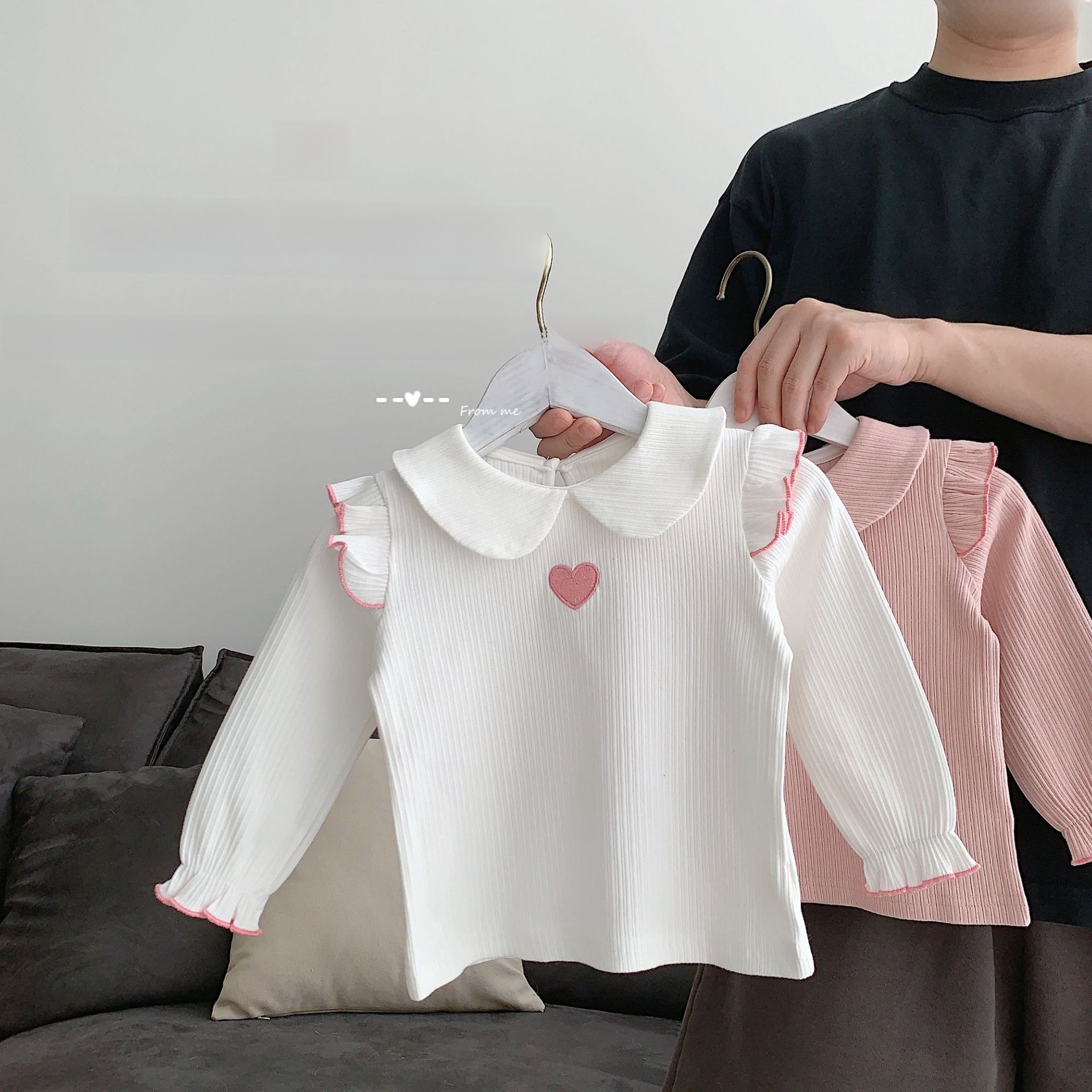 Autumn 2023 0-3 Years Old Girls Children Korean Love Long Sleeve Pullover Base Shirt Top T-shirt