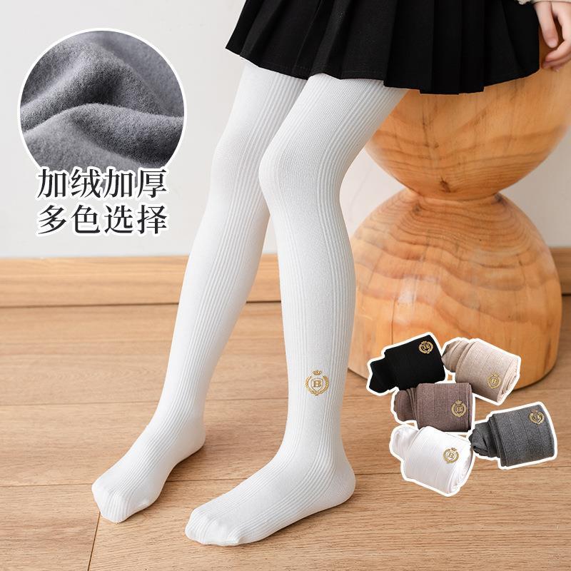 Girls’ leggings autumn and winter medium thick plus thin velvet vertical stripes outer wear cotton brushed baby one-piece pants children’s pantyhose winter