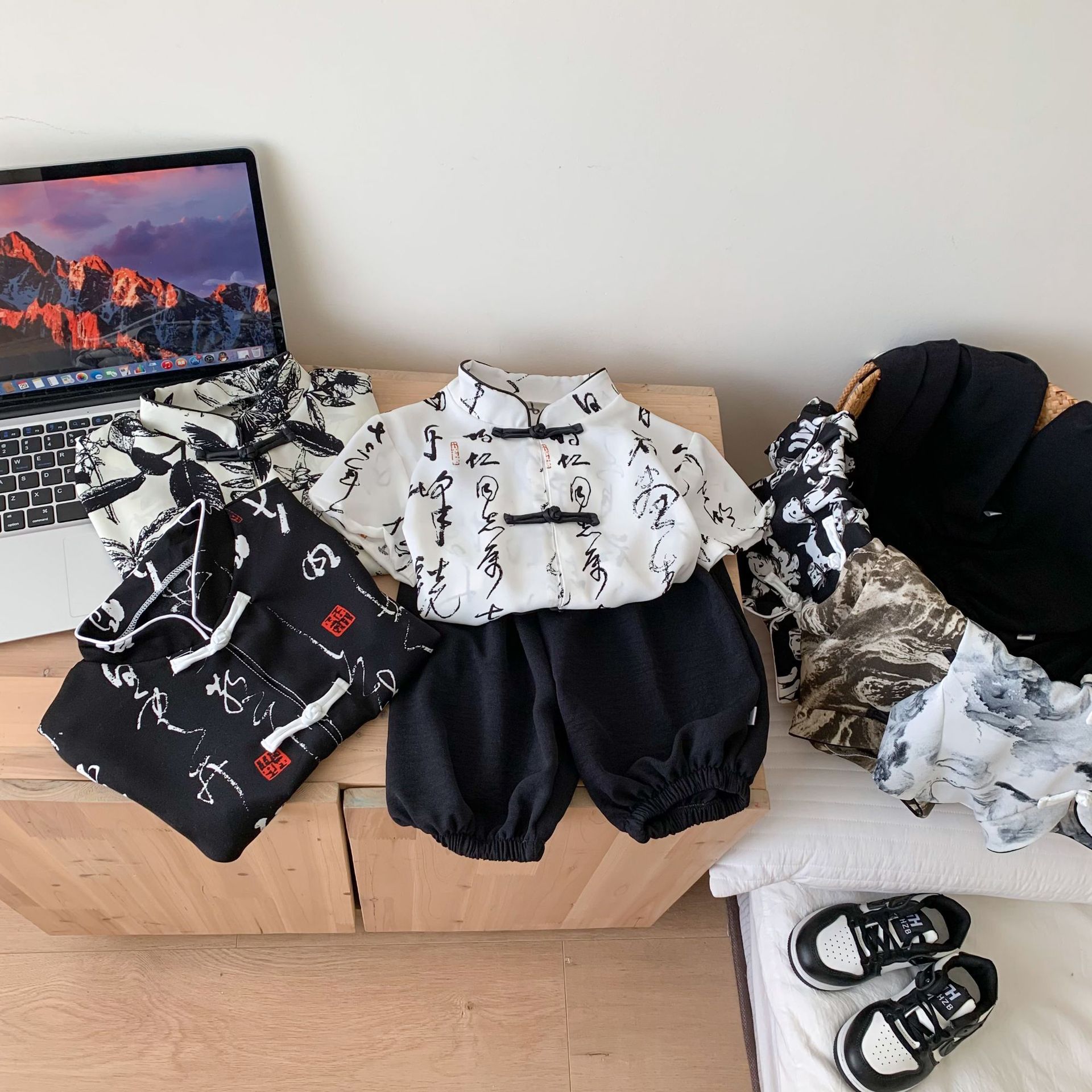 Boys’ Suit Summer New 2024 Children’s Wear Thin Children’s New Chinese Tang Suit Hanfu Two-piece Short-sleeved Suit