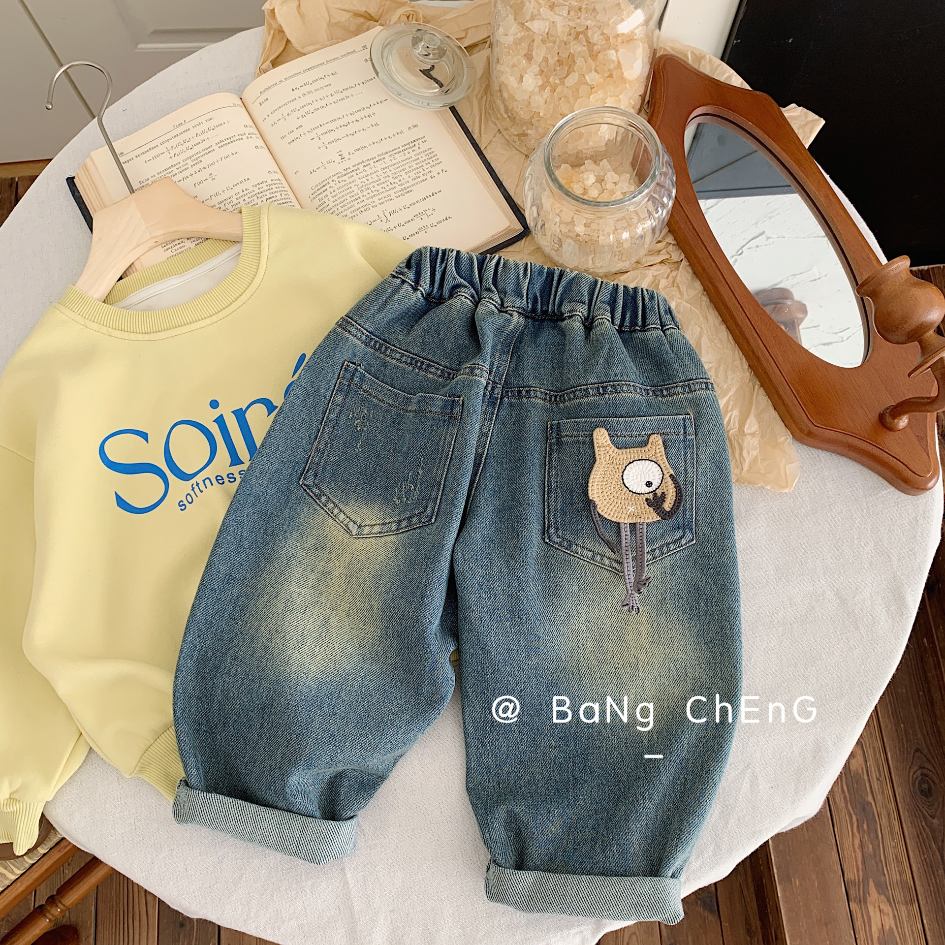 Children’s jeans Bangcheng 2024 spring boys new labeling casual pants cartoon big eye trousers tide G0053