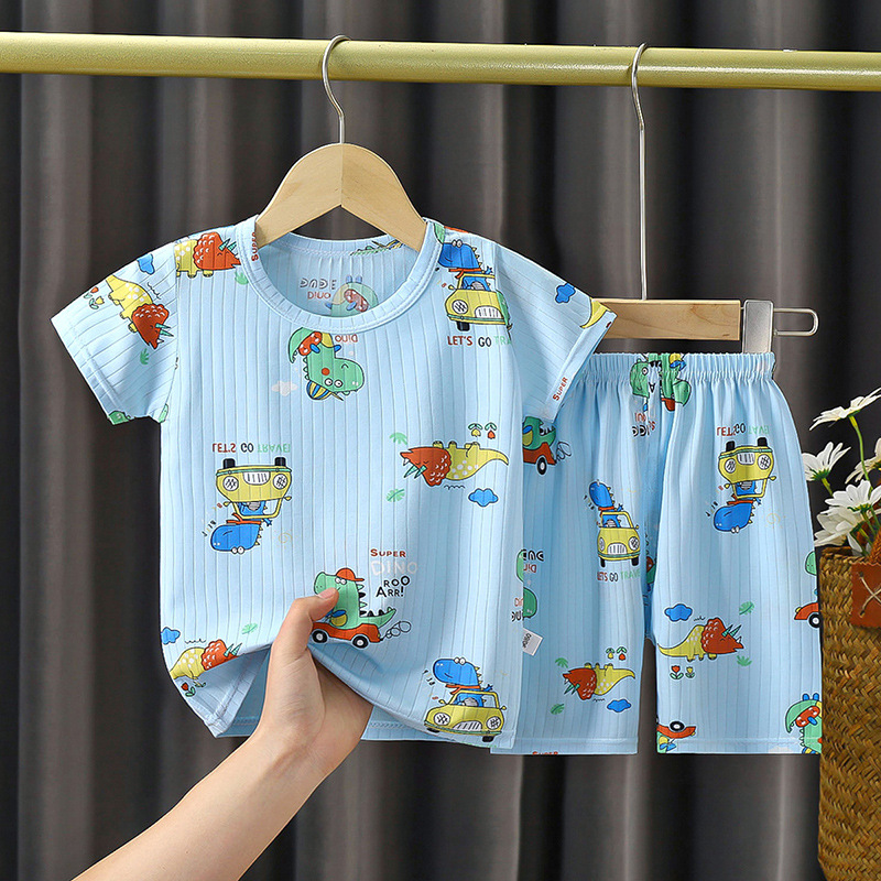 2023 Children’s Summer Suit Boys and Girls Baby Short-sleeved Shorts Suit Infant Thin Air-conditioned Home Clothes