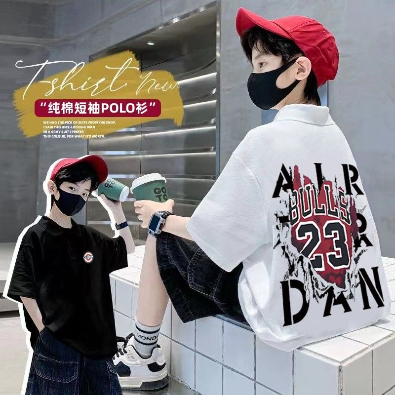 100% Cotton Boys’ short-sleeved T-shirt summer children’s clothing handsome boys’ half-sleeved POLO collar Middle and big children’s fashion top