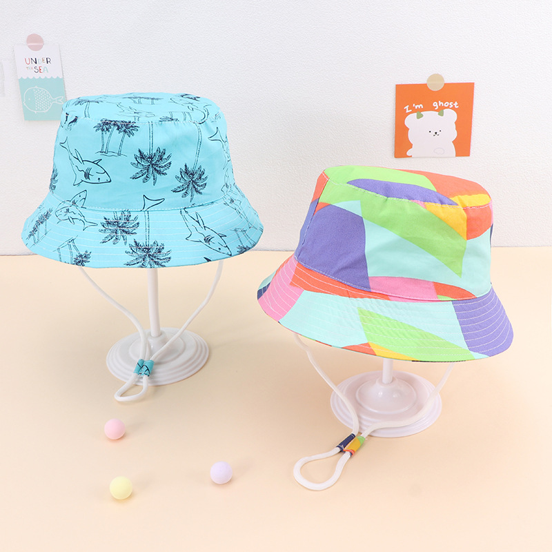 2022 Spring Children’s Fisherman Hat Pastoral Printed Baby Sunshade Basin Hat Fresh Lace-up Sunscreen Baby Hat