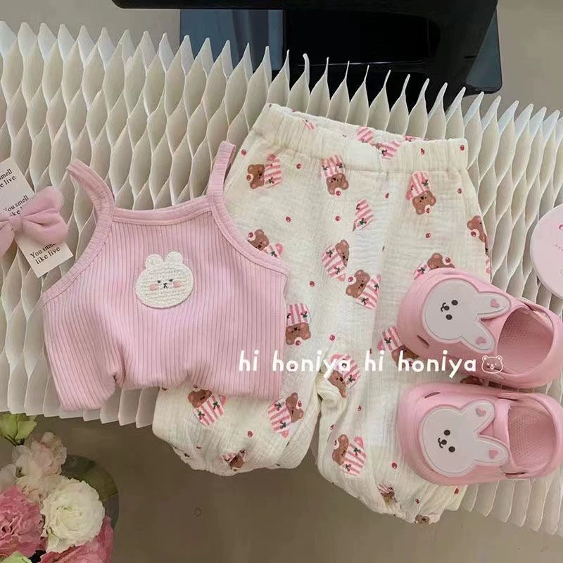 Summer knitted baby girl printed cartoon halter top