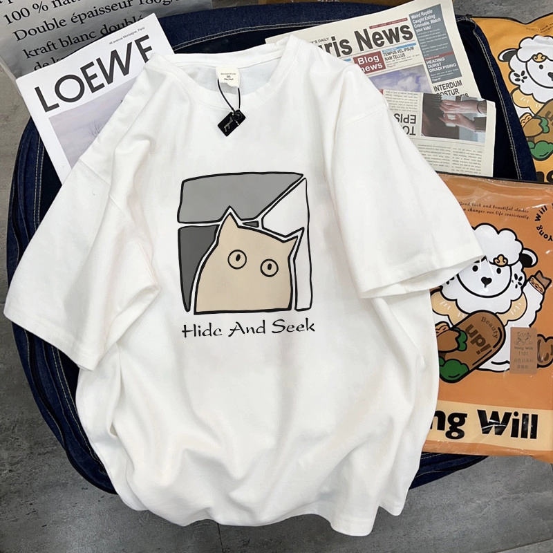 Retro black 2024 new v-neck loose short-sleeved T-shirt