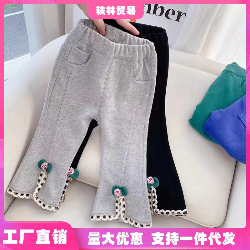 Girl’s Pants New Children’s Spring and Autumn Slit Casual Pants Baby Girl’s Western-style Flared Pants All-match Trousers