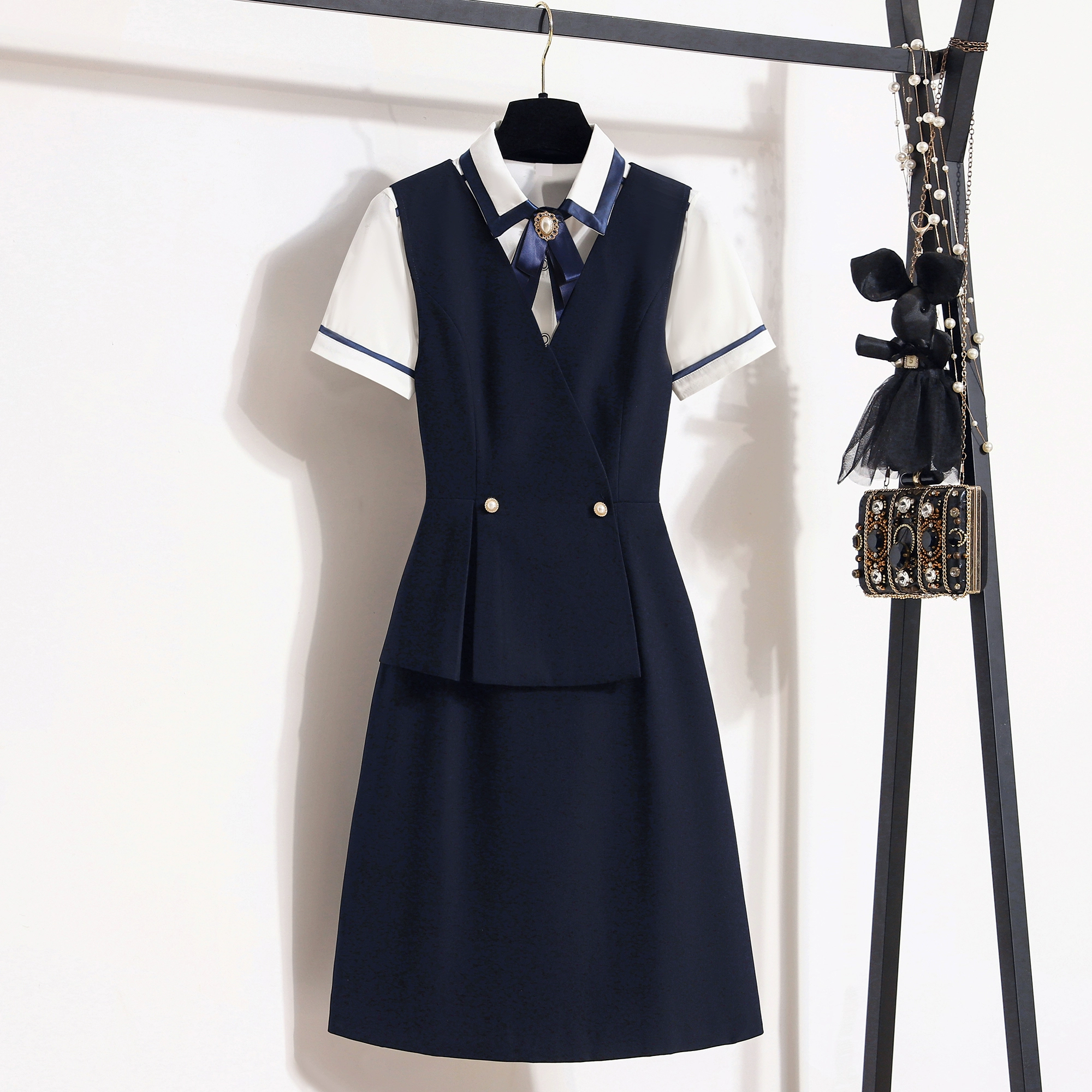 Professional style dress fake two piece kindergarten vest