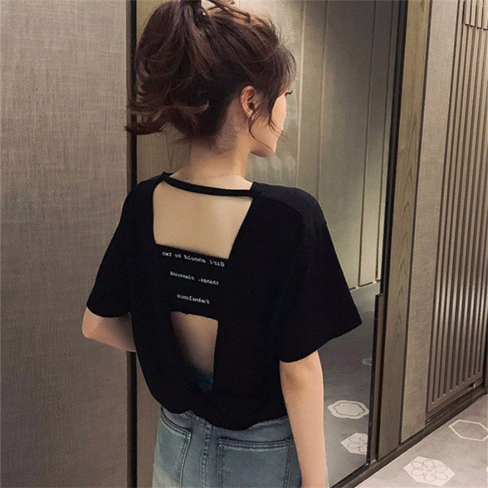 Summer backless discreet short-sleeved top design for women small sexy loose cotton t-shirt women 2024 new style