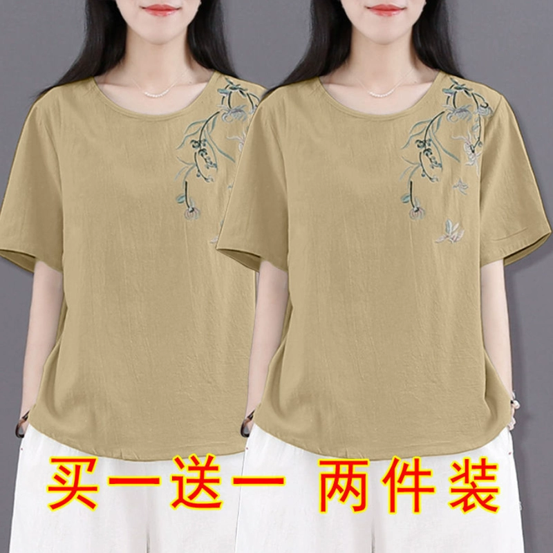 Women’s short-sleeved loose cotton and linen printed T-shirts