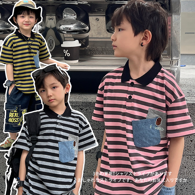 2024 Summer Japanese Style Trendy Brand Children’s Wear Boy’s Baby Half Sleeve T-Shirt Striped Short Sleeve POLO Shirt T-Shirt