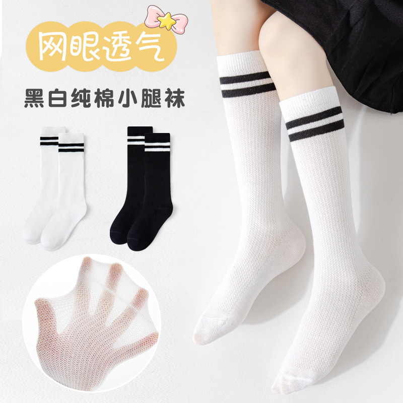 Children’s Calf Socks Summer Thin Mesh Girls College Style White JK Long Tube Cotton Socks Student Men’s Football Socks