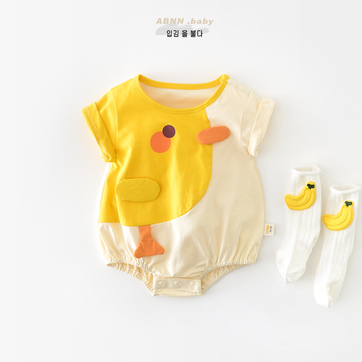 Baby boys’ and girls’ new short-sleeved sheath summer thin cartoon patch romper triangle romper newborn summer clothes