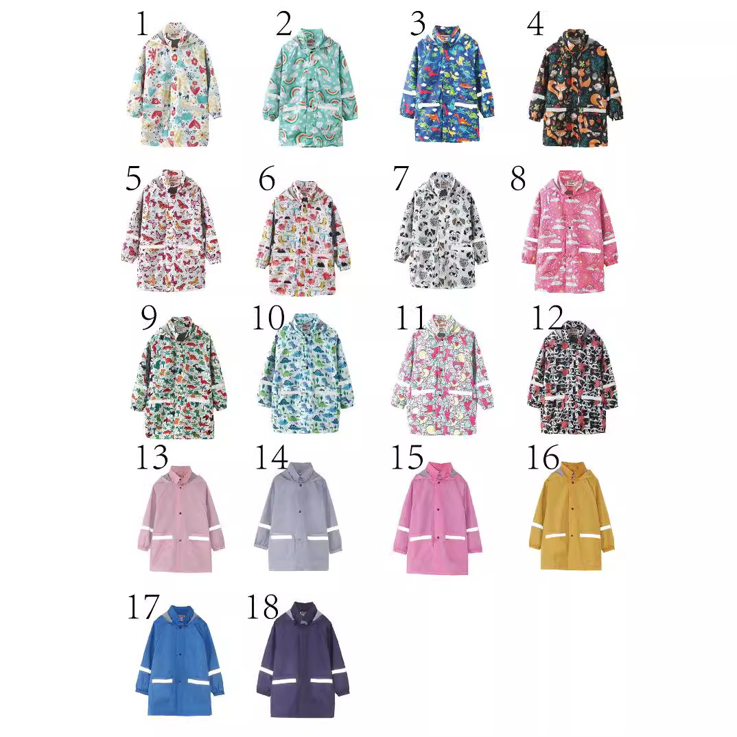 New Rainy Season Children’s Raincoat Coat Cute Printed Hood Mid-length Pocket Outdoor Water-playing Jacket