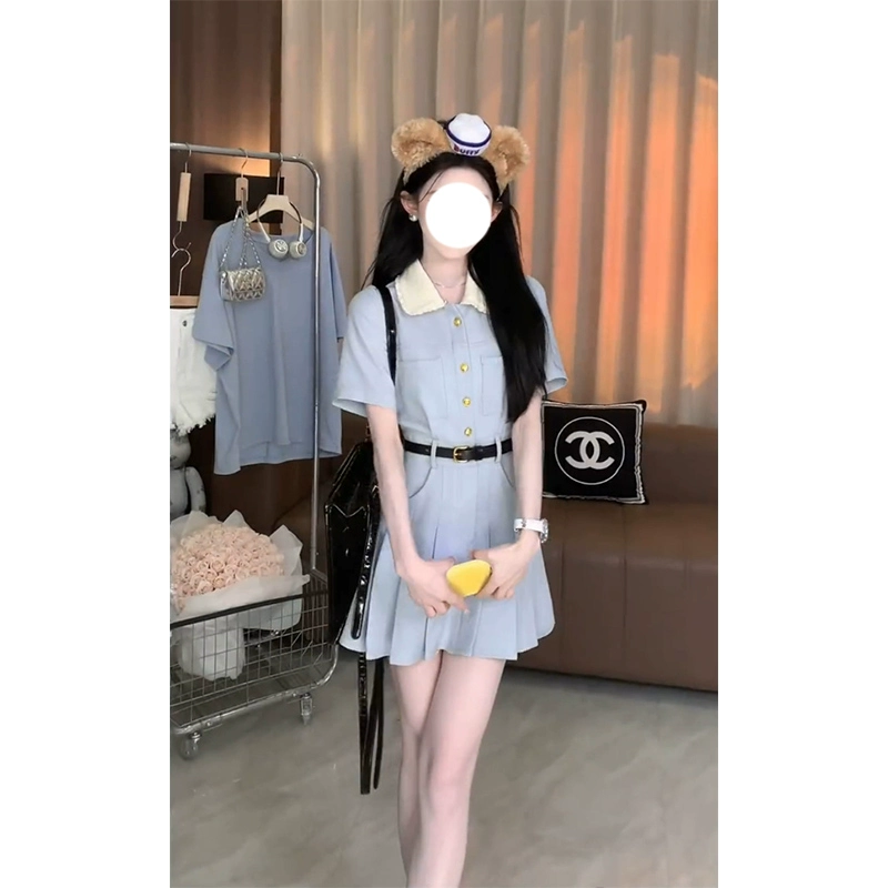 Puff sleeve square neck slimming floral fashionable first love skirt