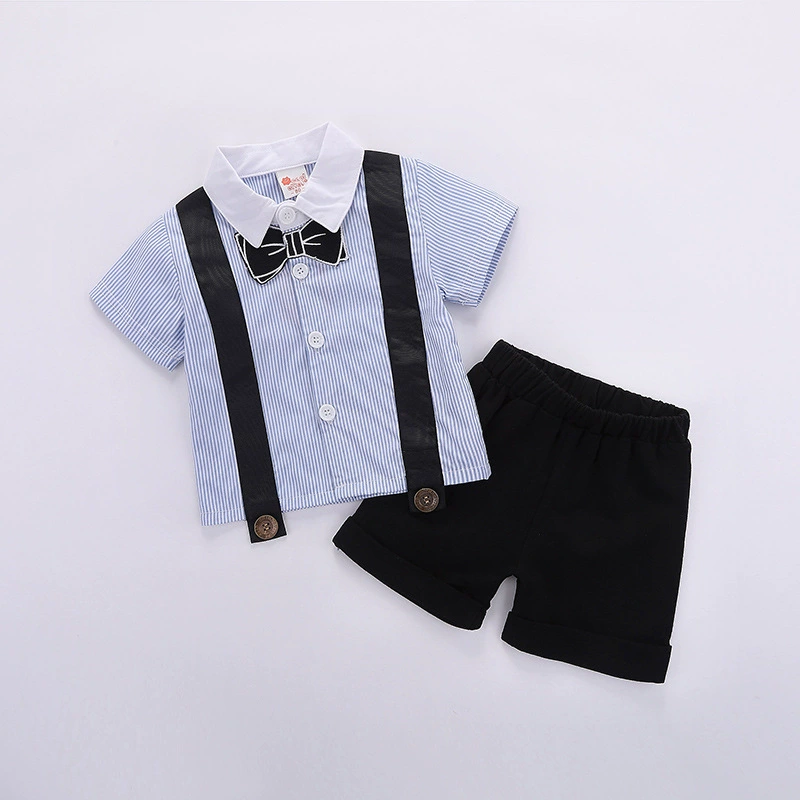 Baby summer clothes new gentleman short-sleeved suit baby newborn 100th anniversary dress bow two-piece set
