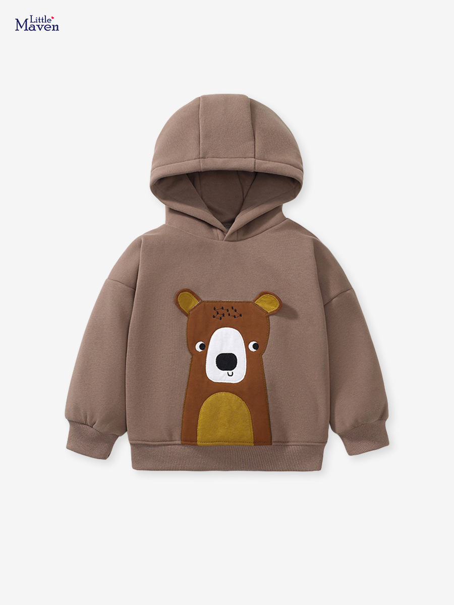 Little maven autumn and winter New fleece-lined children’s coat long sleeve hooded sweater bear children’s sweater