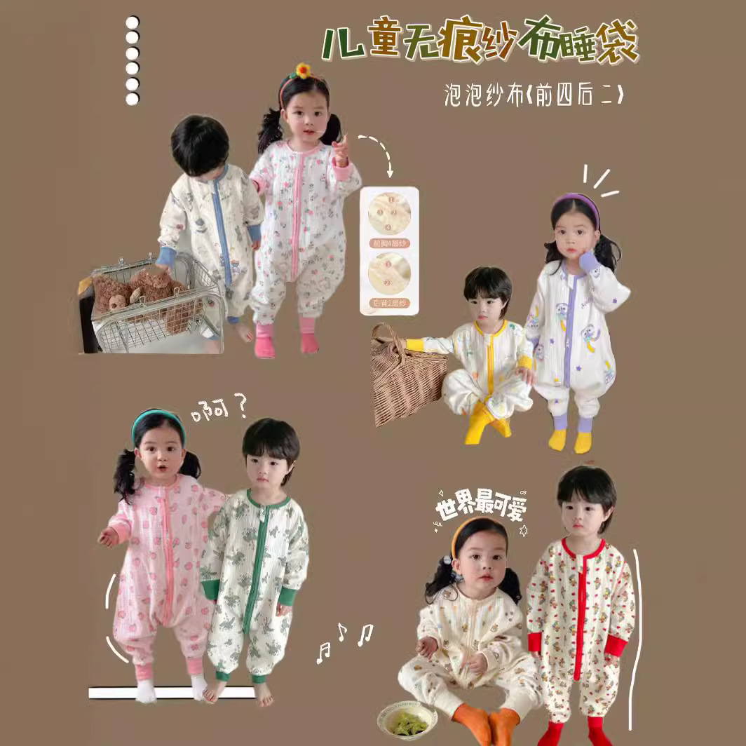 Spring and summer 2023 new children’s jumpsuit thin long sleeve gauze sleeping bag for boys and girls baby cotton yarn breathable climbing suit