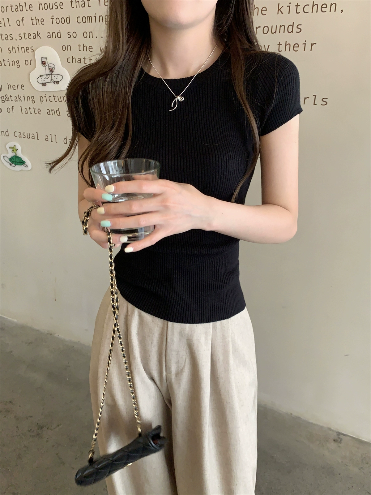 U-neck short-sleeved summer 2024 new slim slim T-shirt