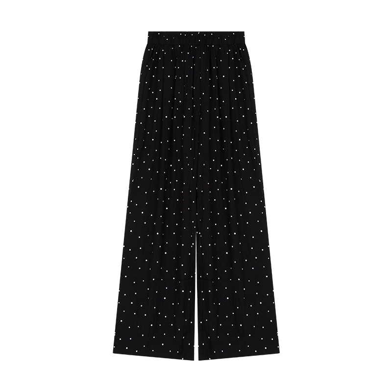 kumikumi polka-dot elastic waist casual wide-leg pants