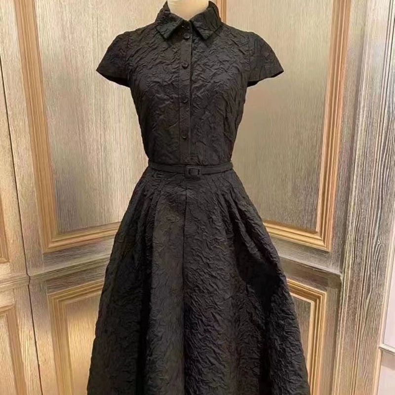 European station temperament black elegant dress short sleeves