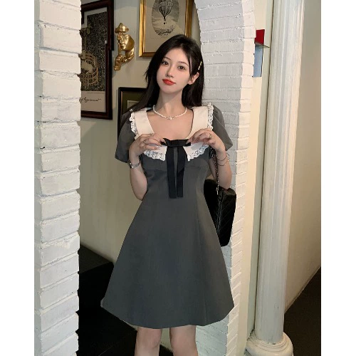 Women’s French summer fat mm belly-covering short-sleeved dress