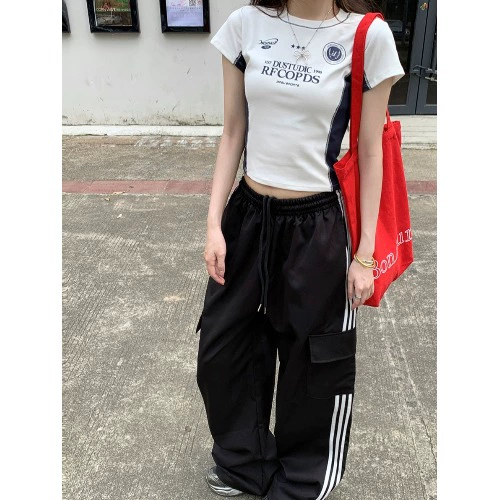 Dongdaemun front and back backless round neck short-sleeved T-shirt