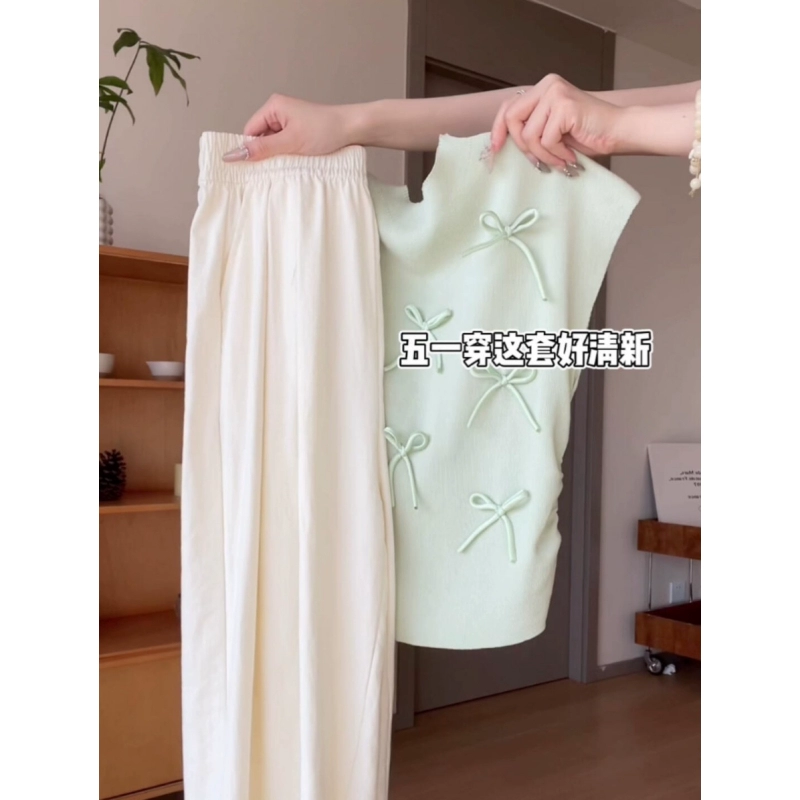 Sweet girl suit short-sleeved T-shirt casual pants lace trim