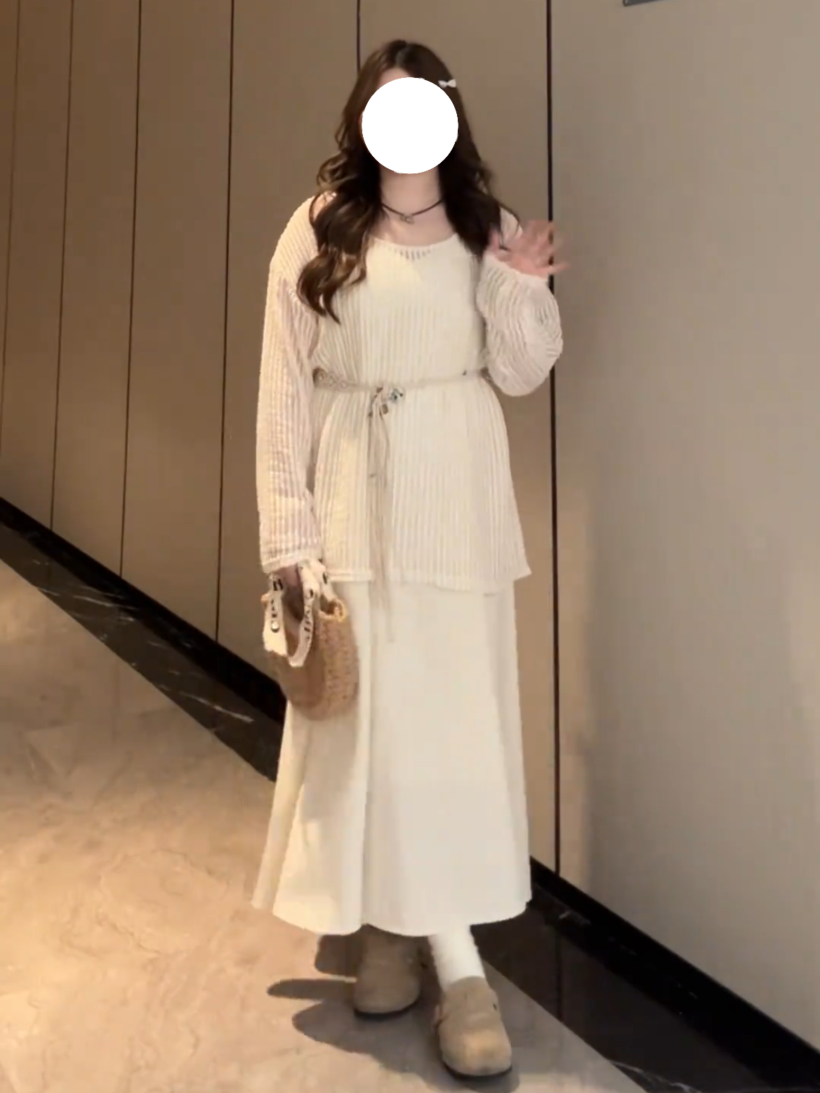 Beige Ribbed Tie-Dye Dress.