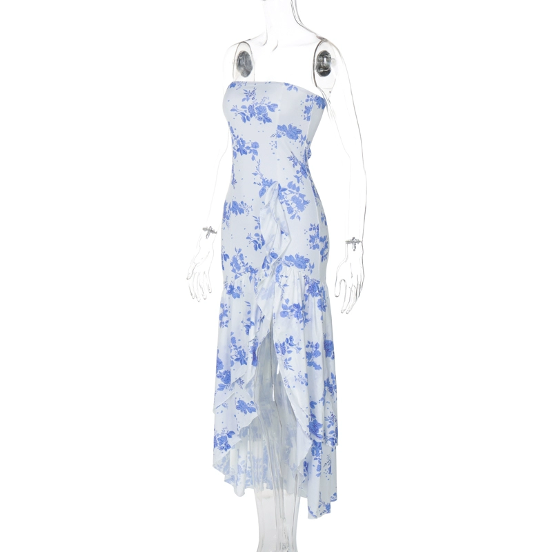 French Floral Puff Sleeve One Shoulder Dress Women’s Summer 2024 New High Waisted Slim A-Line Mid-Length Skirt