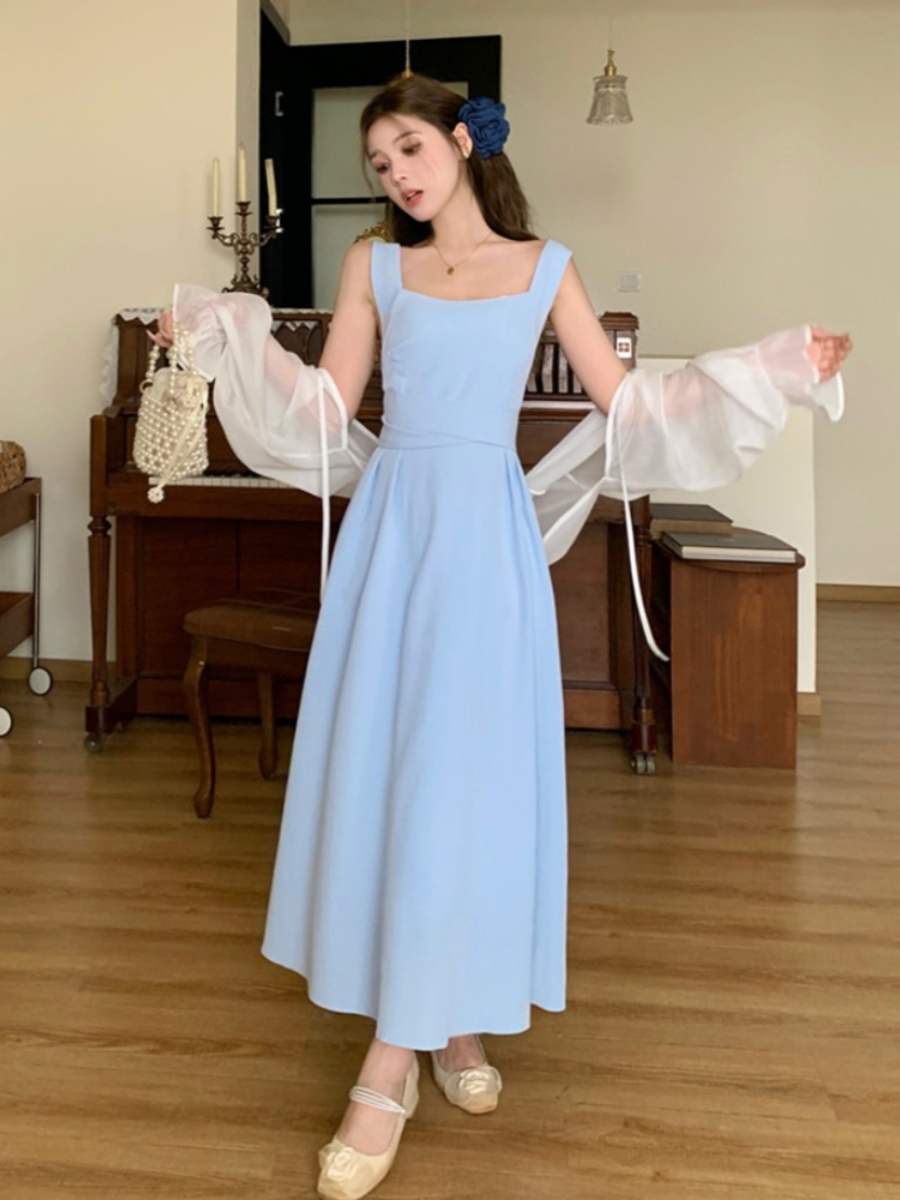 New Chinese style summer retro mesh long skirt v-neck suspender